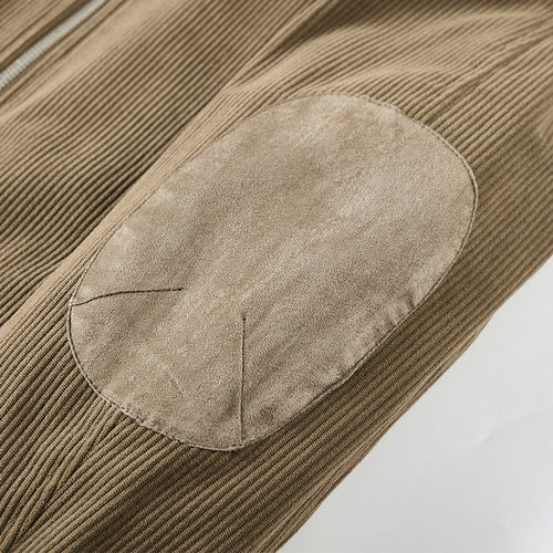 Mens Round Collar Winter Zipped Up Elbow Patch Jacket